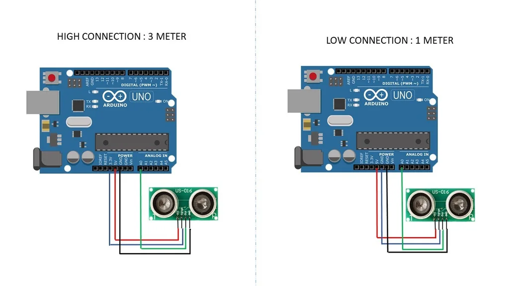 US-016 ultrasonic starting module allows 2 cm ~ 3 m non-measurement capabilities, supply voltage 5 V, operating current 3.8mA, support analog output voltage, stable and reliable. This module may be different varies depending on the application of the scenario (maximum measurement range for each 1 m and 3 m); When the range of pin floating range is 3 meters.US-016 measuring distance can be converted to analog output voltage, the output voltage is proportional to the measured distance.